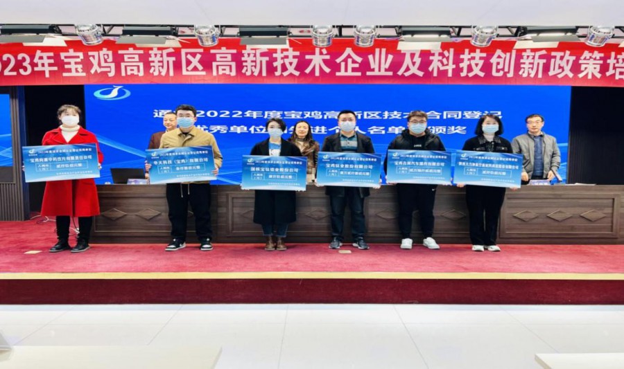 3月20日,2023年寶雞高新區高新技術企業及科技創新政策培訓會順利召開,公司獲“2022年度技術合同認定登記工作優秀單位及先進個人”獎勵,這是公司開展技術合同認定工作后第三次榮獲此獎勵。